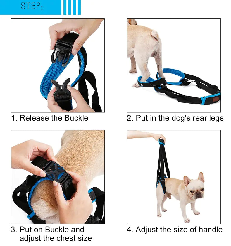 Adjustable Design: With adjustable straps and buckles, our harness can be customized to fit your dog's unique needs. Whether you have a small or large breed, you can easily adjust the harness to provide the perfect level of support and comfort.