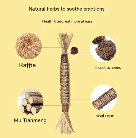 The "Polygonum Molar Cat Toy Stick" is a durable, natural cat toy designed to help maintain oral health. Made with fine Polygonum Multiflorum, it effectively removes tartar and promotes healthy teeth and gums. The stick is a fun and safe way for cats to engage in chewing while reducing plaque buildup. Perfect for keeping your cat entertained and supporting their dental hygiene.